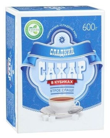 Сладкий сахар со стевией "Сладкий мир" белый в кубиках, коробка 600 г. интересное: