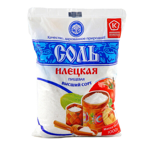 Руссоль соль пищевая Илецкая высший сорт, 1 кг, пакет