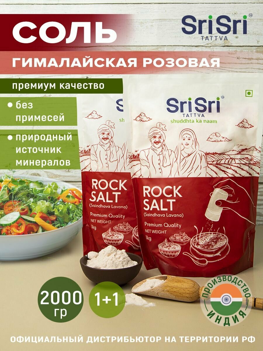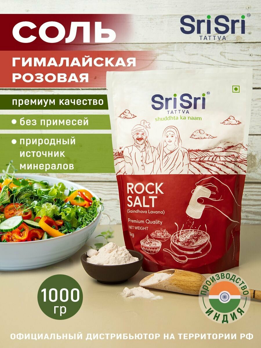 SriSri Tattva Соль Каменная розовая мелкий помол, 1 кг Индия