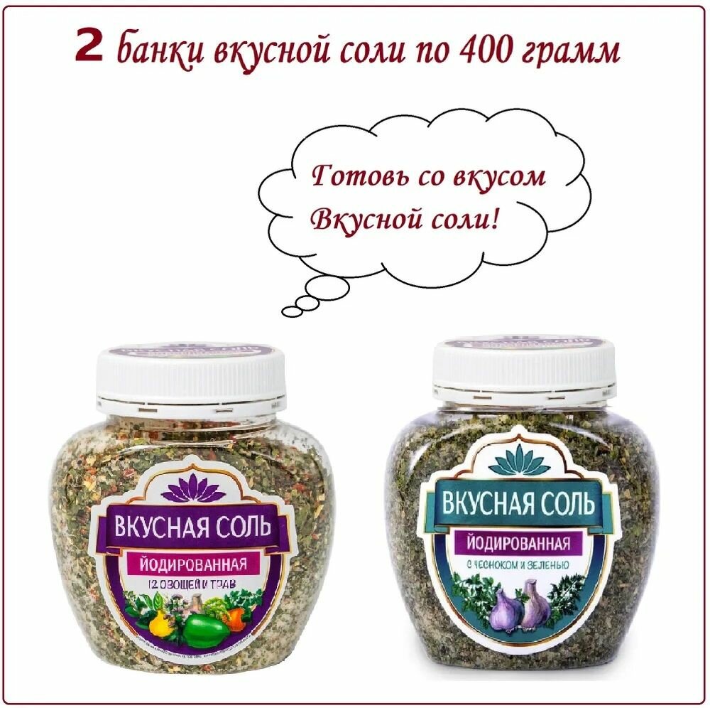 Набор из 2-х видов "Вкусная соль", с чесноком и 12 трав, по 400 г интересное: