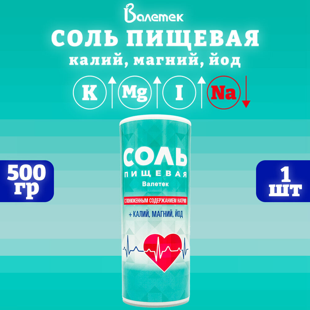 Соль пищевая калий, магний, йод, Валетек, 1 шт. по 500 г интересное: