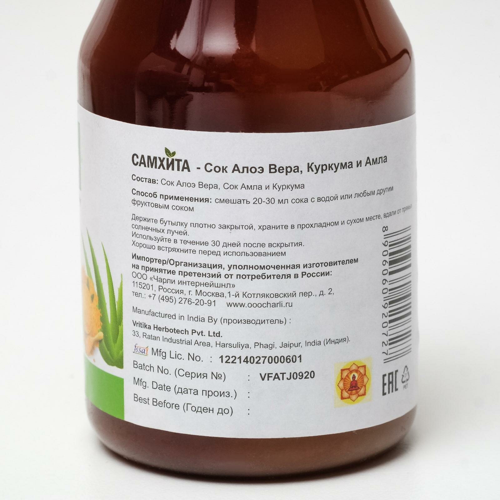 | Состав | Сок листьев Алоэ Вера, сок Амла, сок корневища Куркумы |