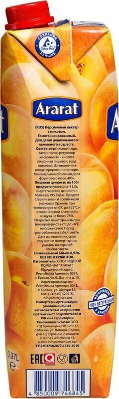 Персик нектар С МЯК "ARARAT PREMIUM" 0,97 Л интересное: