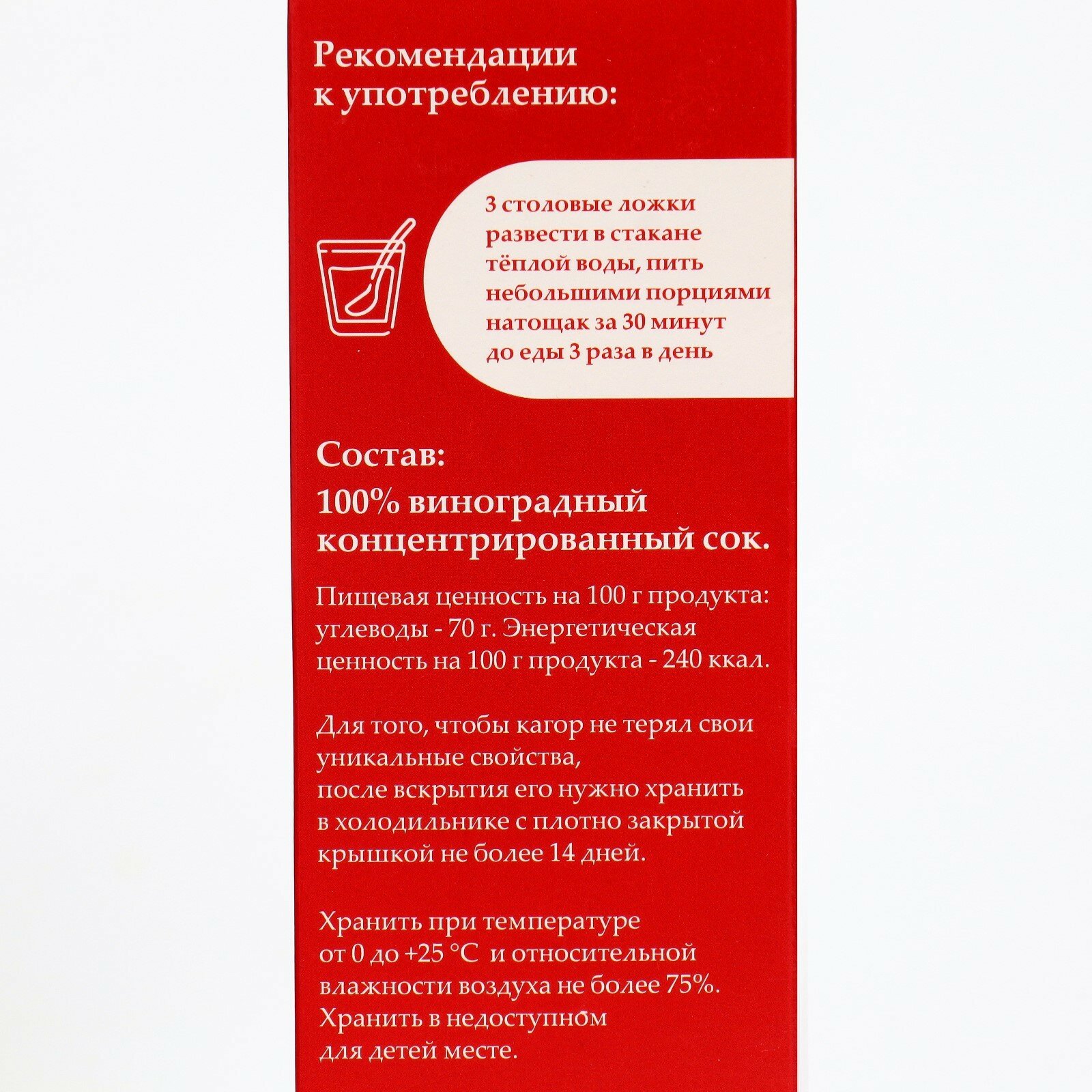 | Состав | 100% виноградный концентрированный сок высшего сорта |
