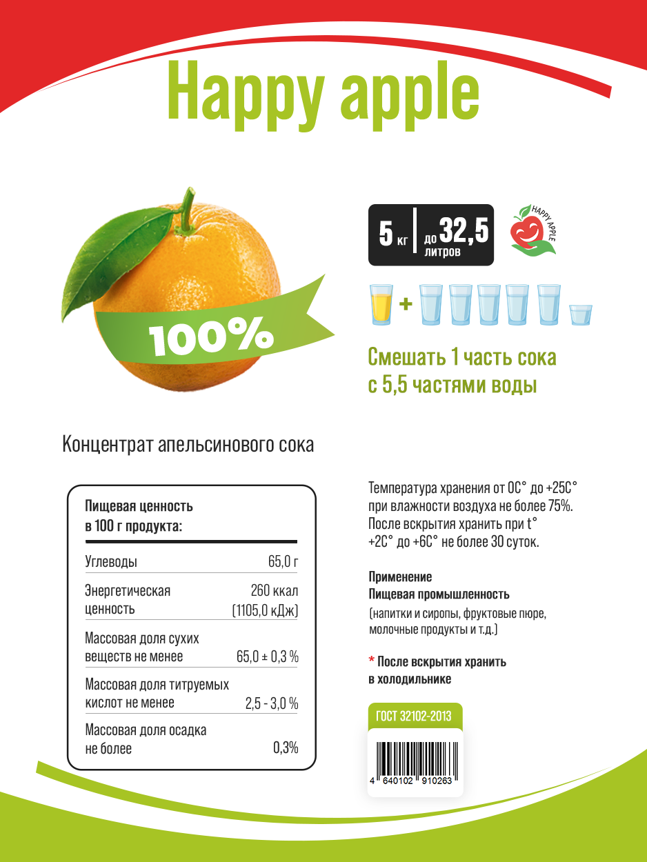 Сок концентрированный Апельсиновый 5 кг, кисл. 3% (Happy Apple) интересное: