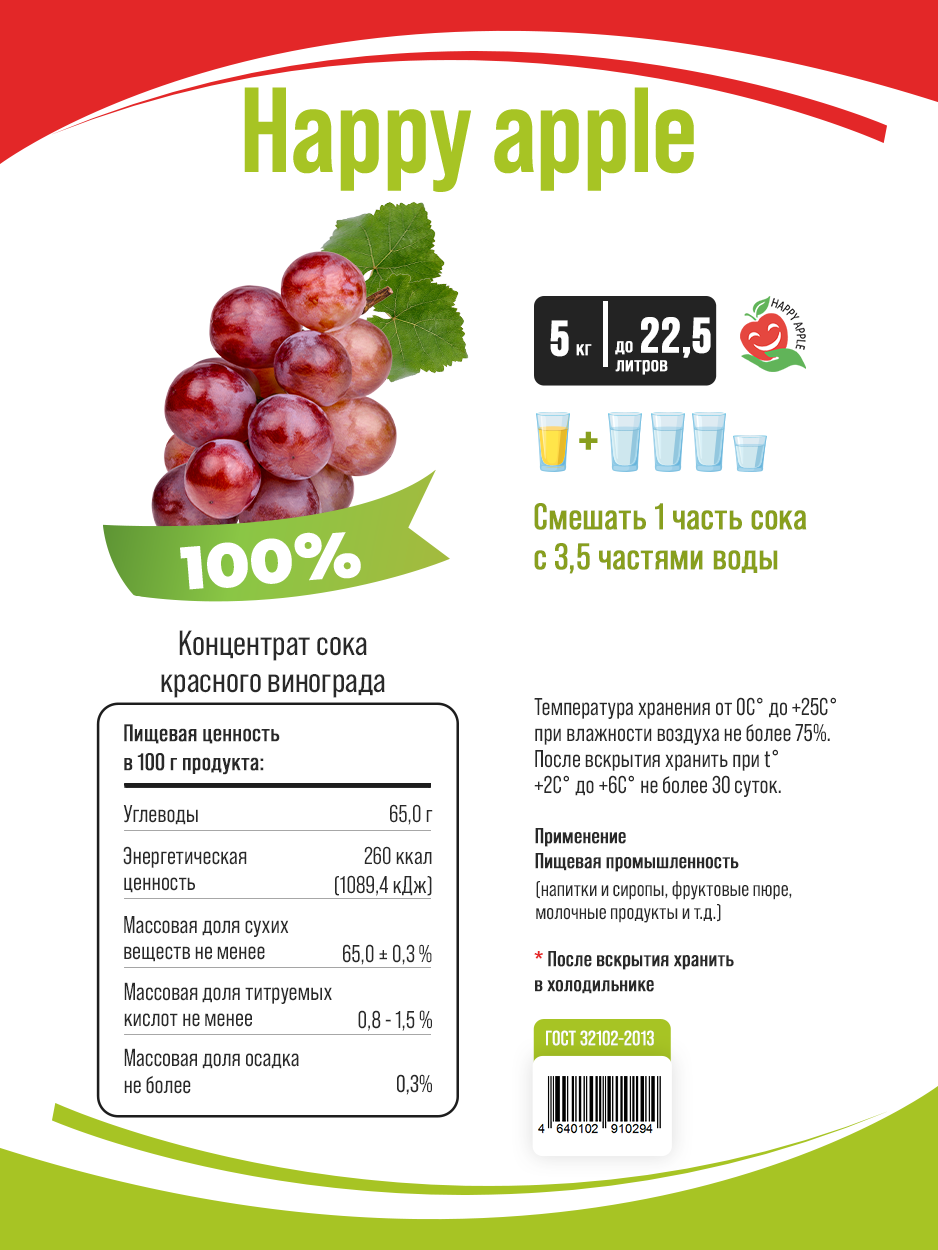 Сок концентрированный Виноградный красный 5 кг, кисл. 1,5% (Happy Apple) интересное: