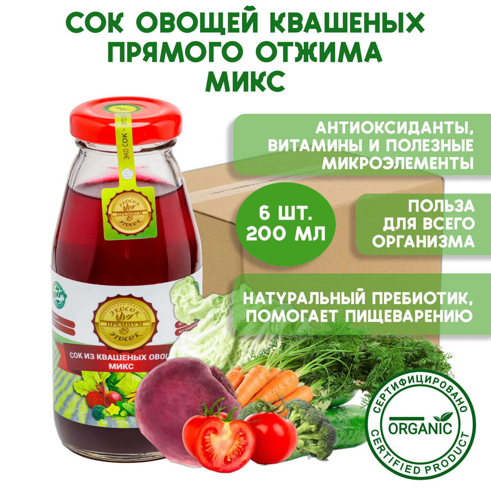 Сок из квашеных овощей (овощной) Микс (мультиовощной) без сахара прямого отжима 0,2 л. x 6 шт. интересное: