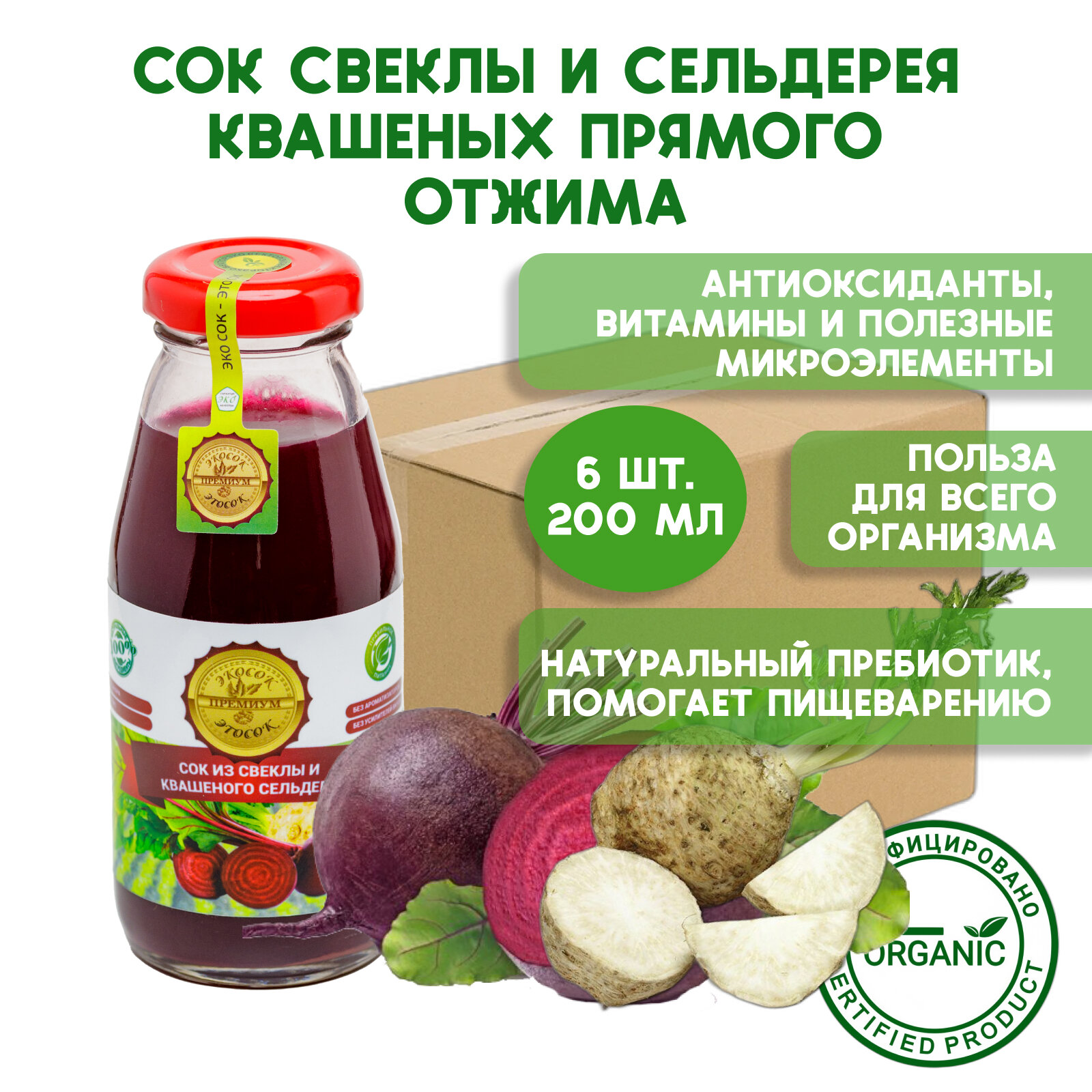Купить Сок Эко сок - Это сок из свеклы и квашеного сельдерея, 200мл, упак. 6 шт
