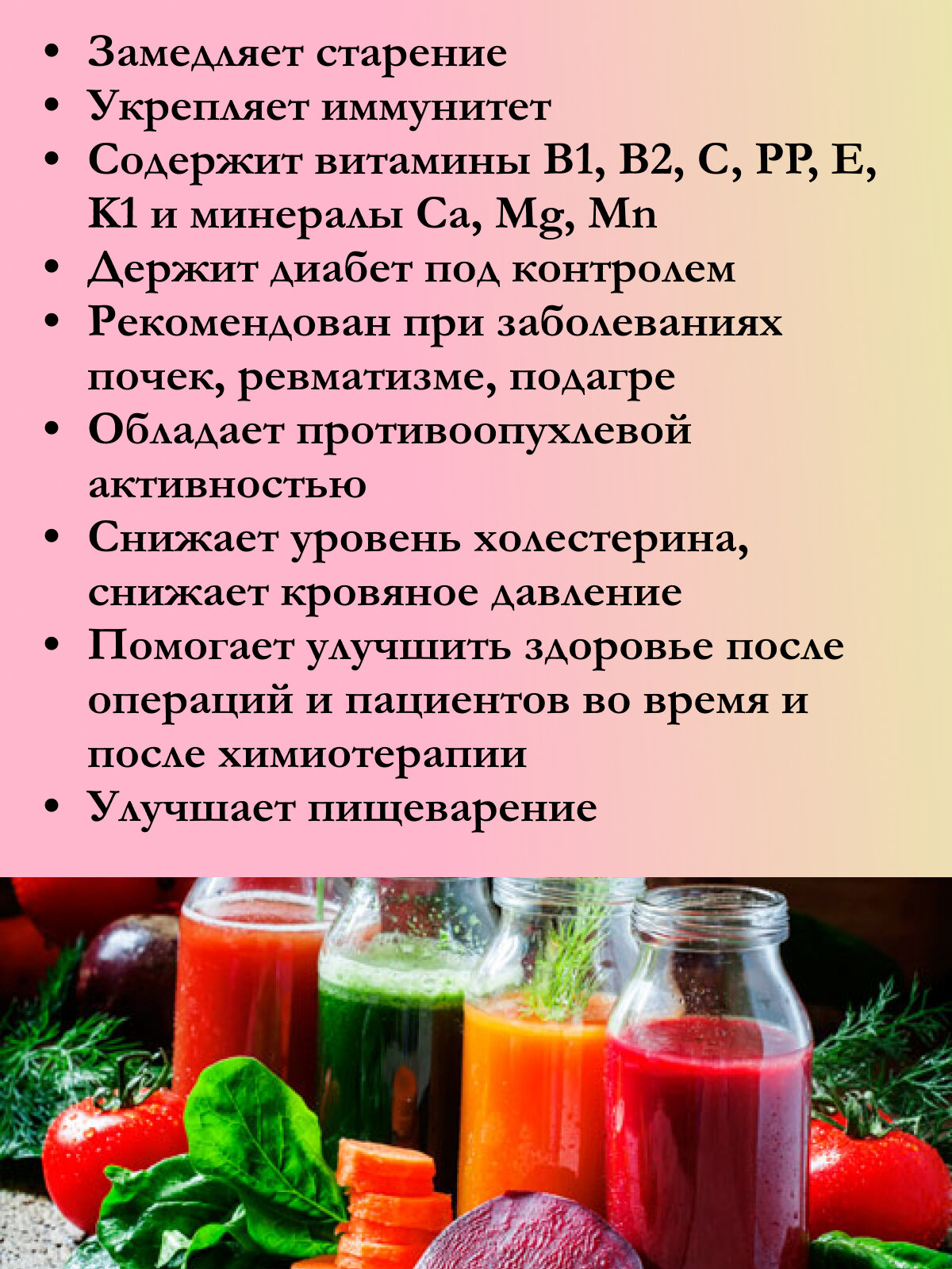 | Содержит | витамины / соль / сок |