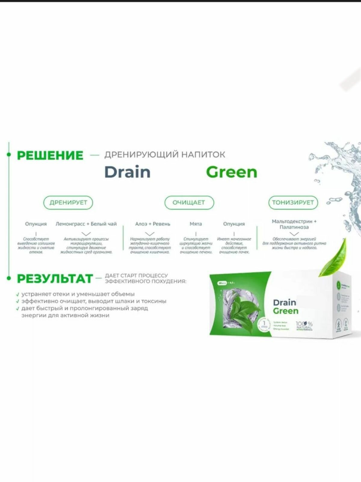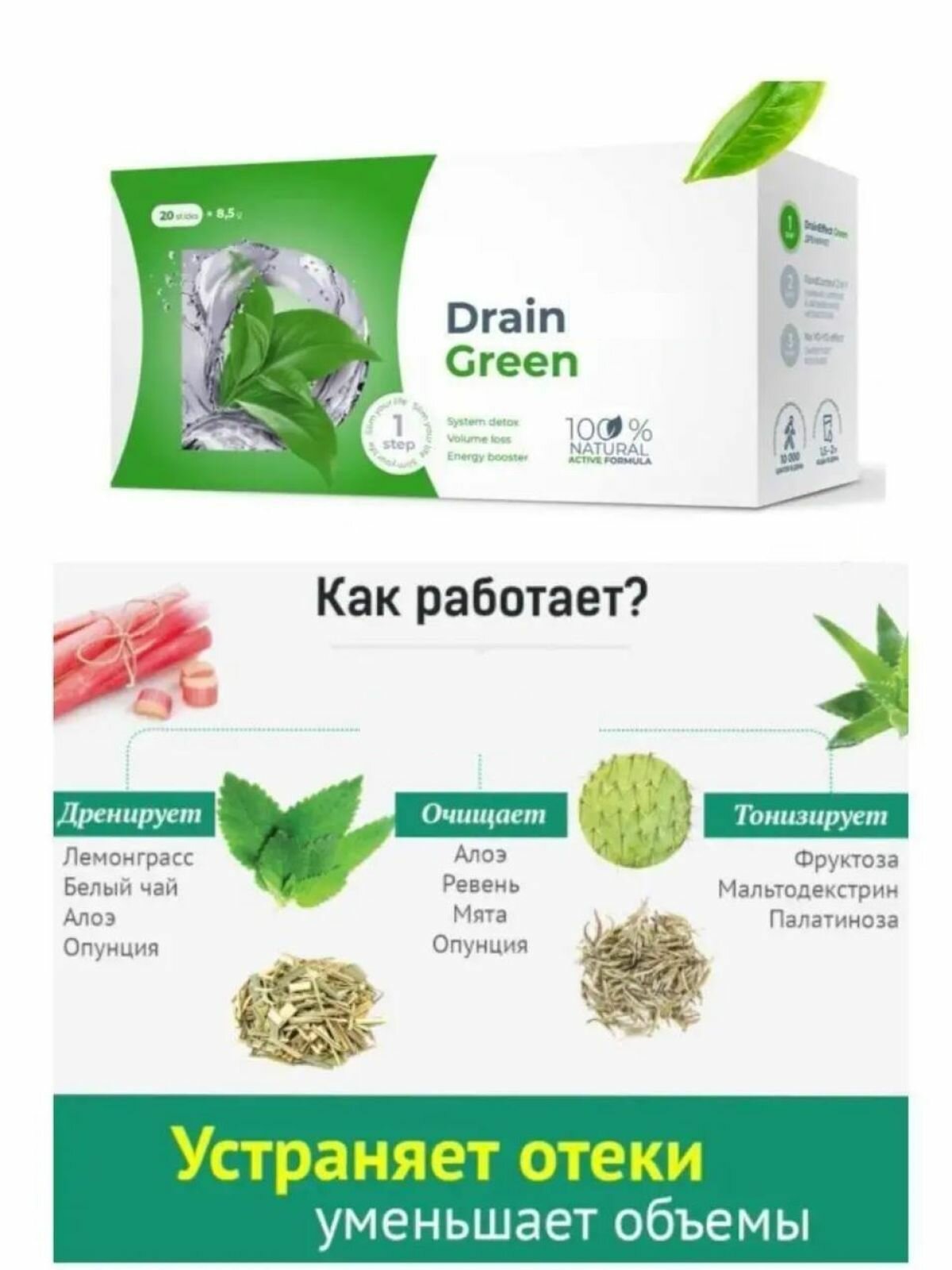 Дренажный напиток DrainEffect Green для снятия отеков и уменьшения объемов. Нормализует обмен веществ/ выводит лишнюю воду/ очищает от токсинов. Набор для похудения и детокса (20 порций) интересное: