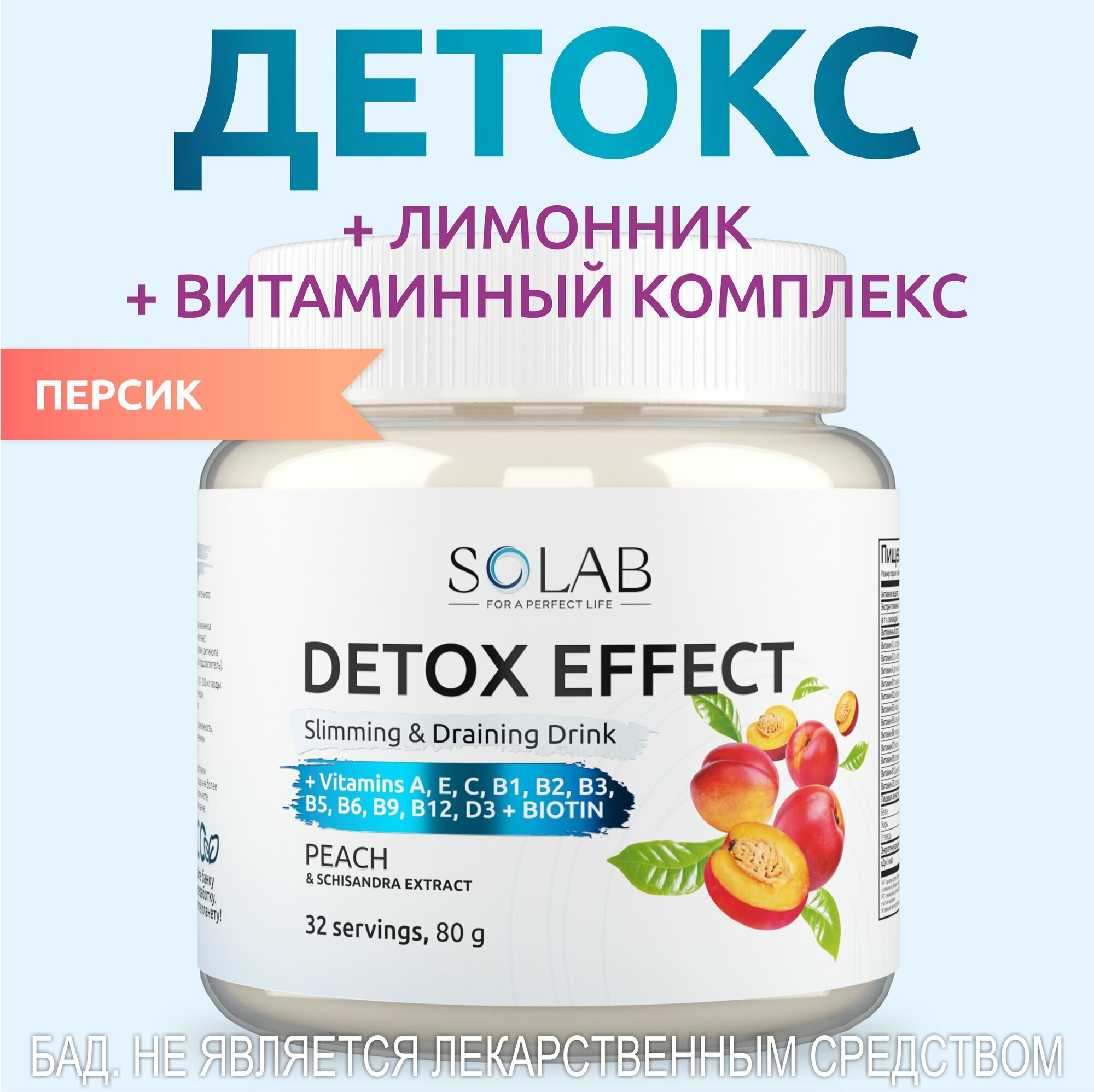 Купить SOLAB Фитококтейль детокс Detox Slim Effect со вкусом персика, 32 порции с экстрактом лимонника для похудения, очищения