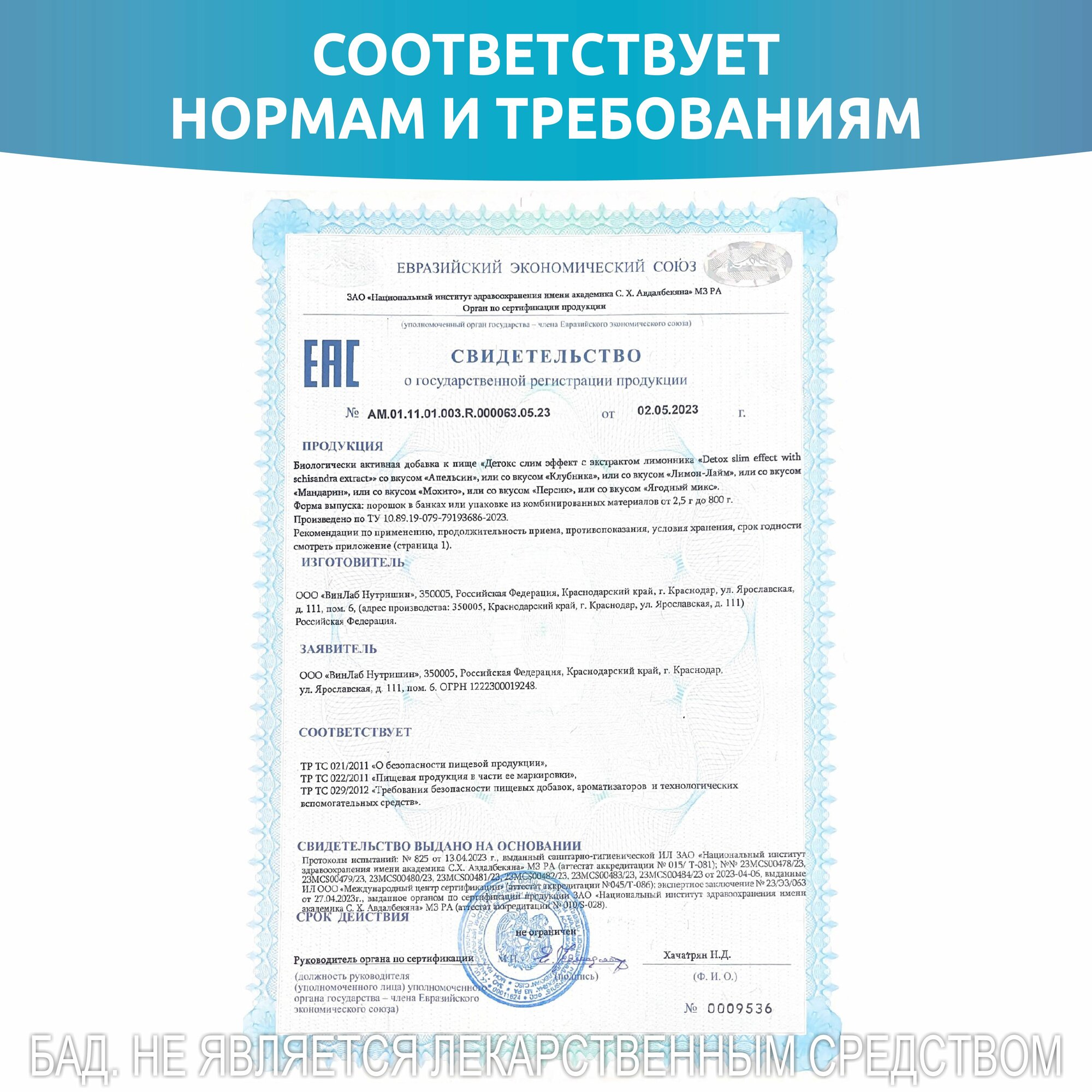 SOLAB Фитококтейль детокс Detox Slim Effect со вкусом лайм-лимон, 32 порции с экстрактом лимонника для похудения