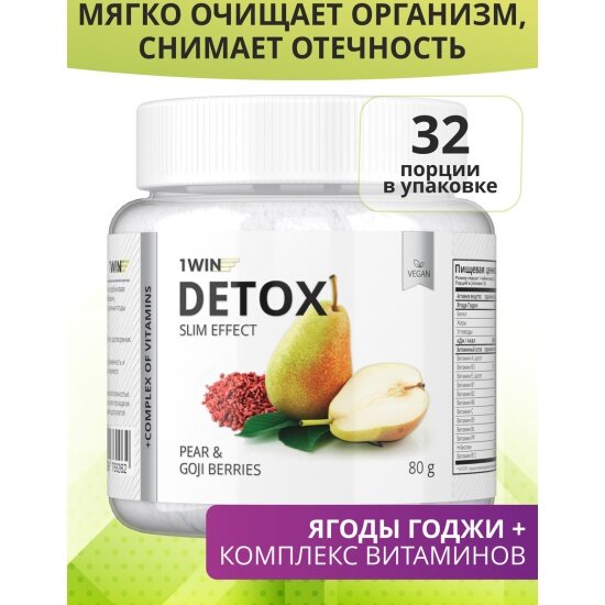 Купить 1WIN Detox Slim Effect / Напиток дренажный Детокс Слим Эффект с Ягодами Годжи. Вкус Груша, 32 порции для снижения веса и избавления от отеков