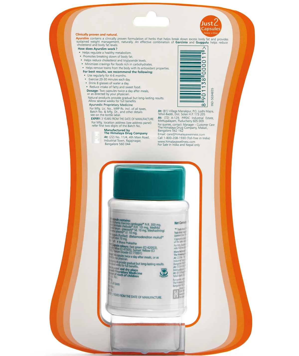 Купить Аюрслим для похудения (Ayurslim Himalaya) AyurSlim для похудения, улучшает обмен веществ, детокс, расщепляет жиры, 60 капс.