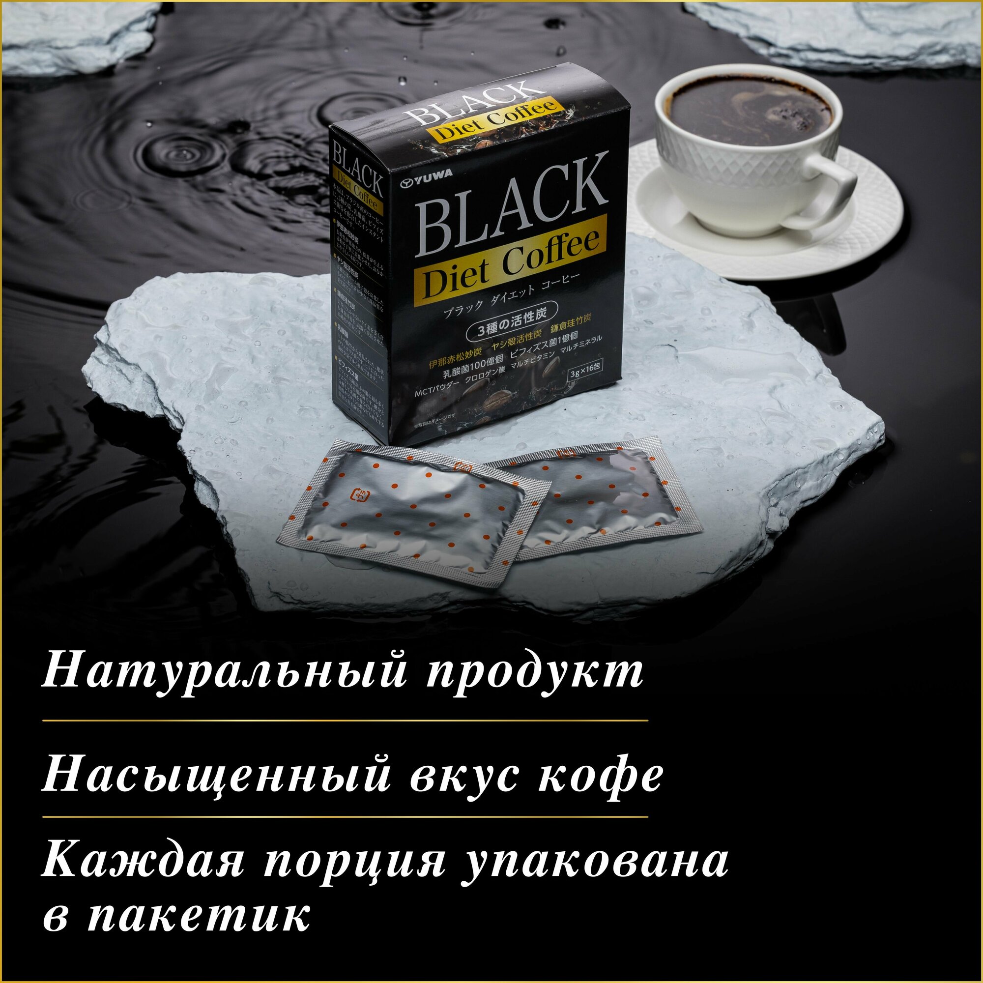 Купить YUWA Черный кофе Япония DIET для контроля веса с тремя видами активированного угля и лактобактериями (16 шт.*3 гр.)