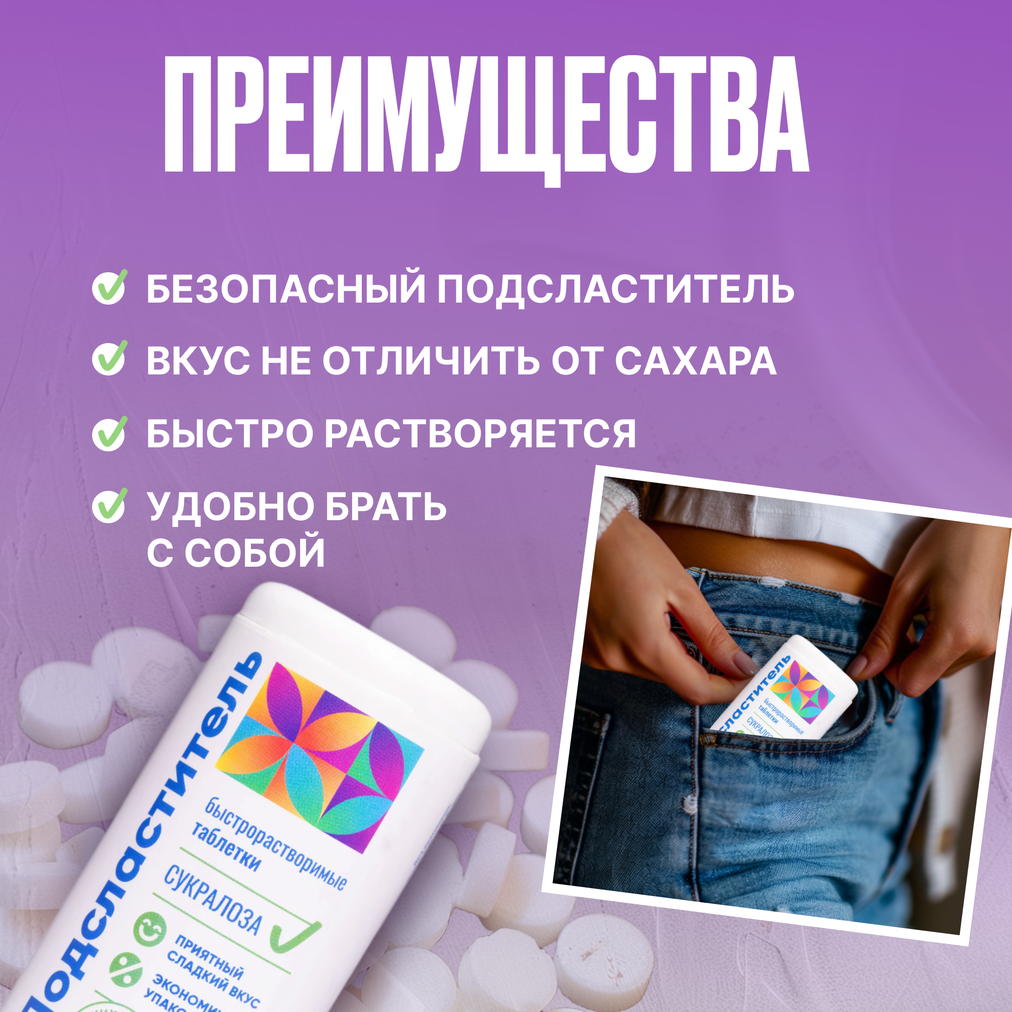 Сахарозаменитель в таблетках Сукралоза 400 шт, подсластитель