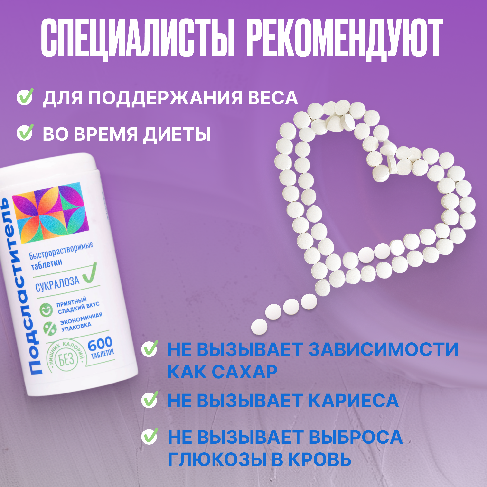 Ниже Вы можете прочитать отзывы на Сахарозаменитель подсластитель в таблетках Сукралоза 600 шт, ознакомится с подробными характеристиками, посмотреть интересные обзоры и фотографии на Сахарозаменитель подсластитель в таблетках Сукралоза 600 шт.