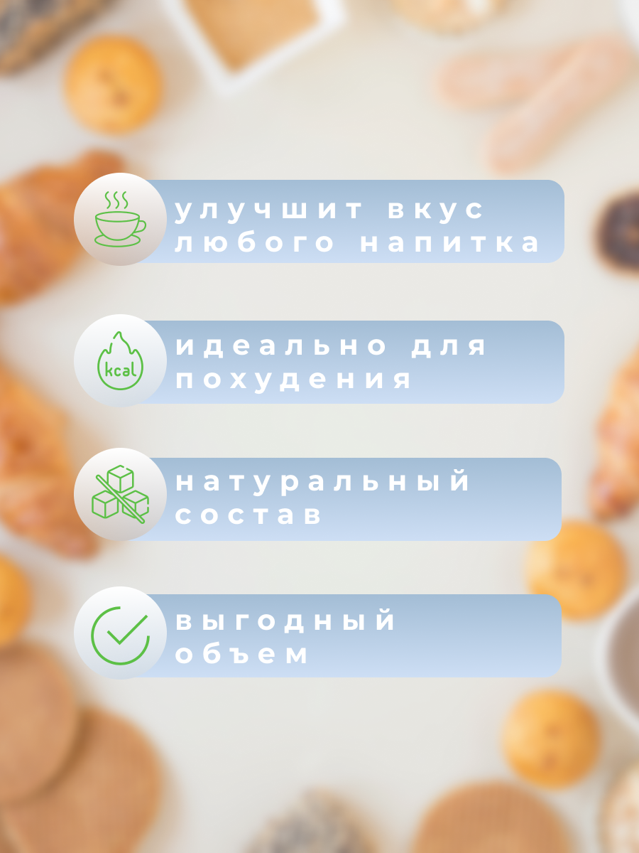 | Дополнительная информация | сладкий вкус, приятное послевкусие, для здорового питания, натуральный подсластитель |