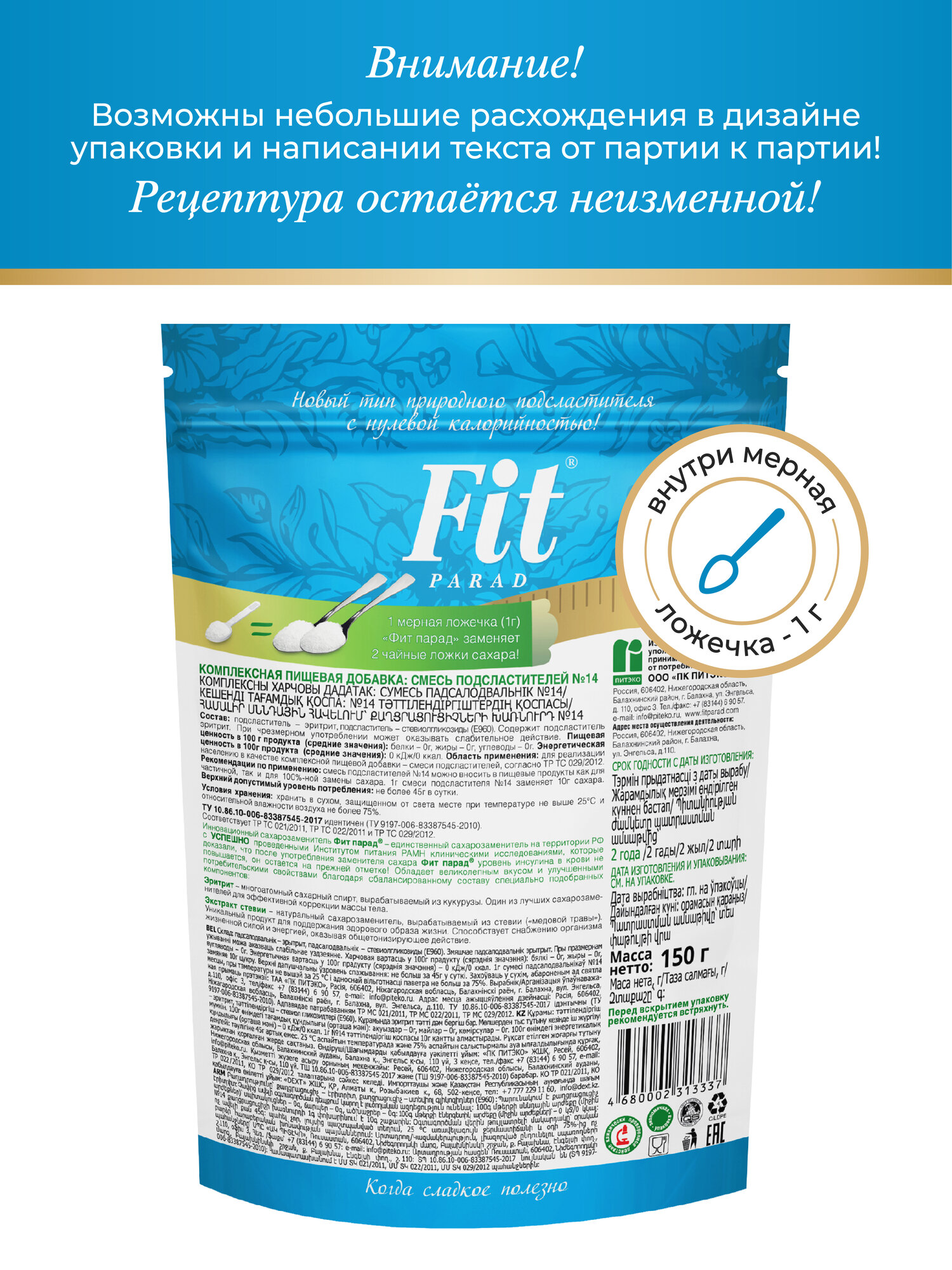 FitPARAD / Сахарозаменитель ФитПарад №14 дой-пак 150 г. интересное: