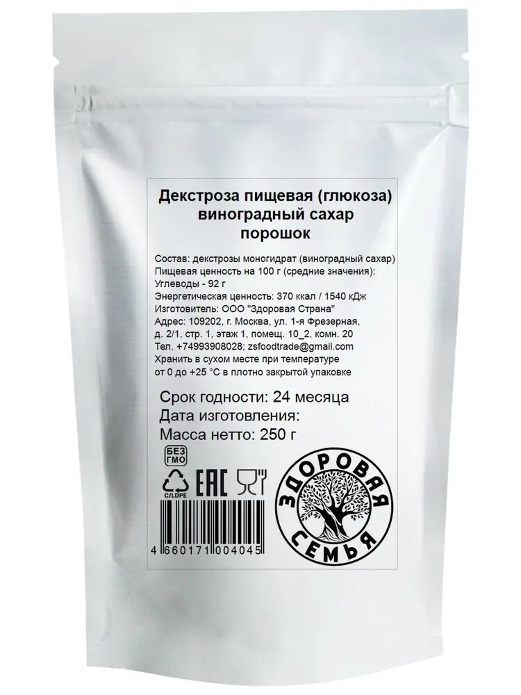 Декстроза пищевая в порошке (глюкоза), Здоровая Семья, 250 г интересное: