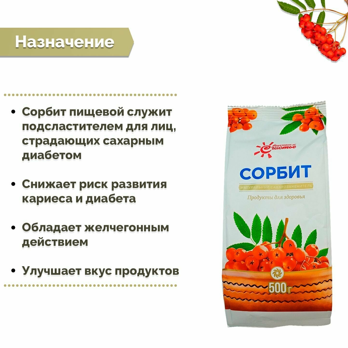 Подсластитель сорбит "Фруктовое счастье", порошок, пакет 500 г. интересное: