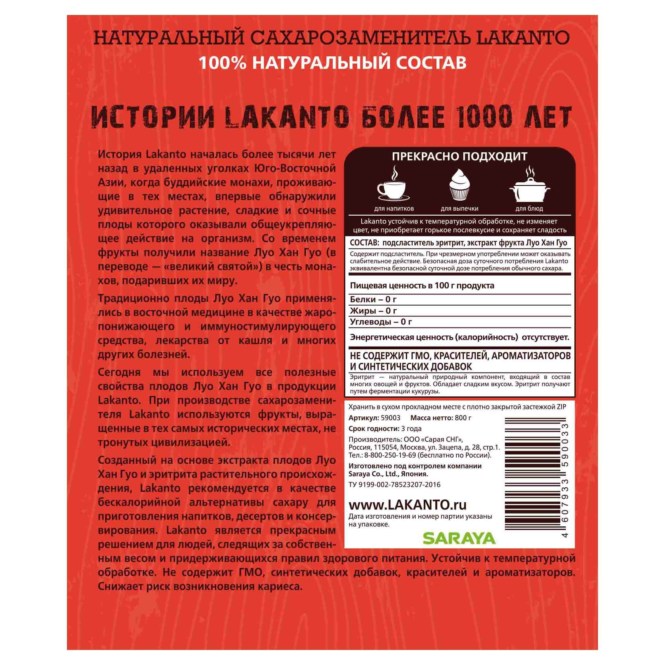 LAKANTO сахарозаменитель Classic порошок, 800 г