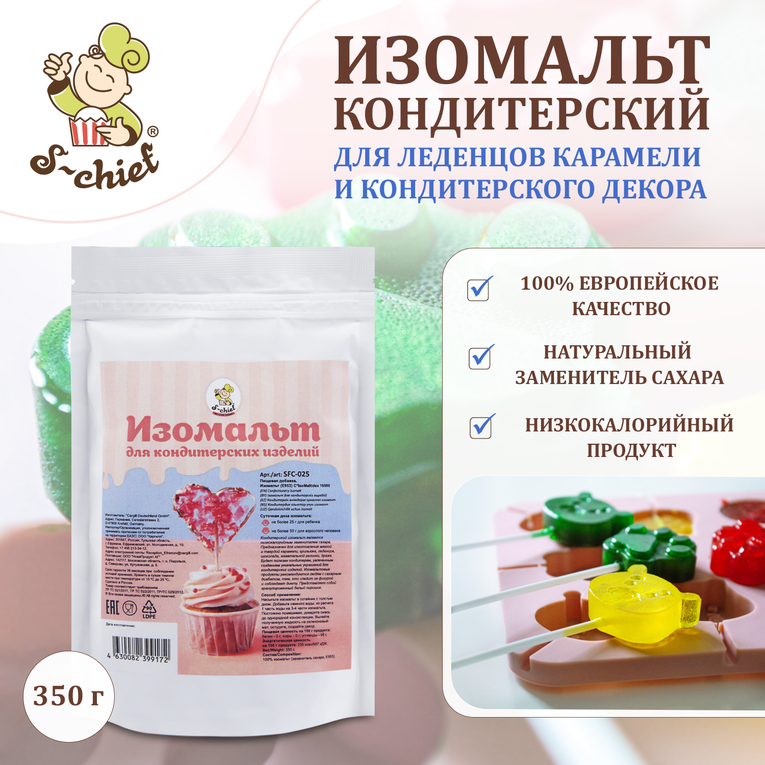 Изомальт кондитерский "S-CHIEF" для леденцов и карамели, сахарозаменитель SFC-025 350 гр. интересное: