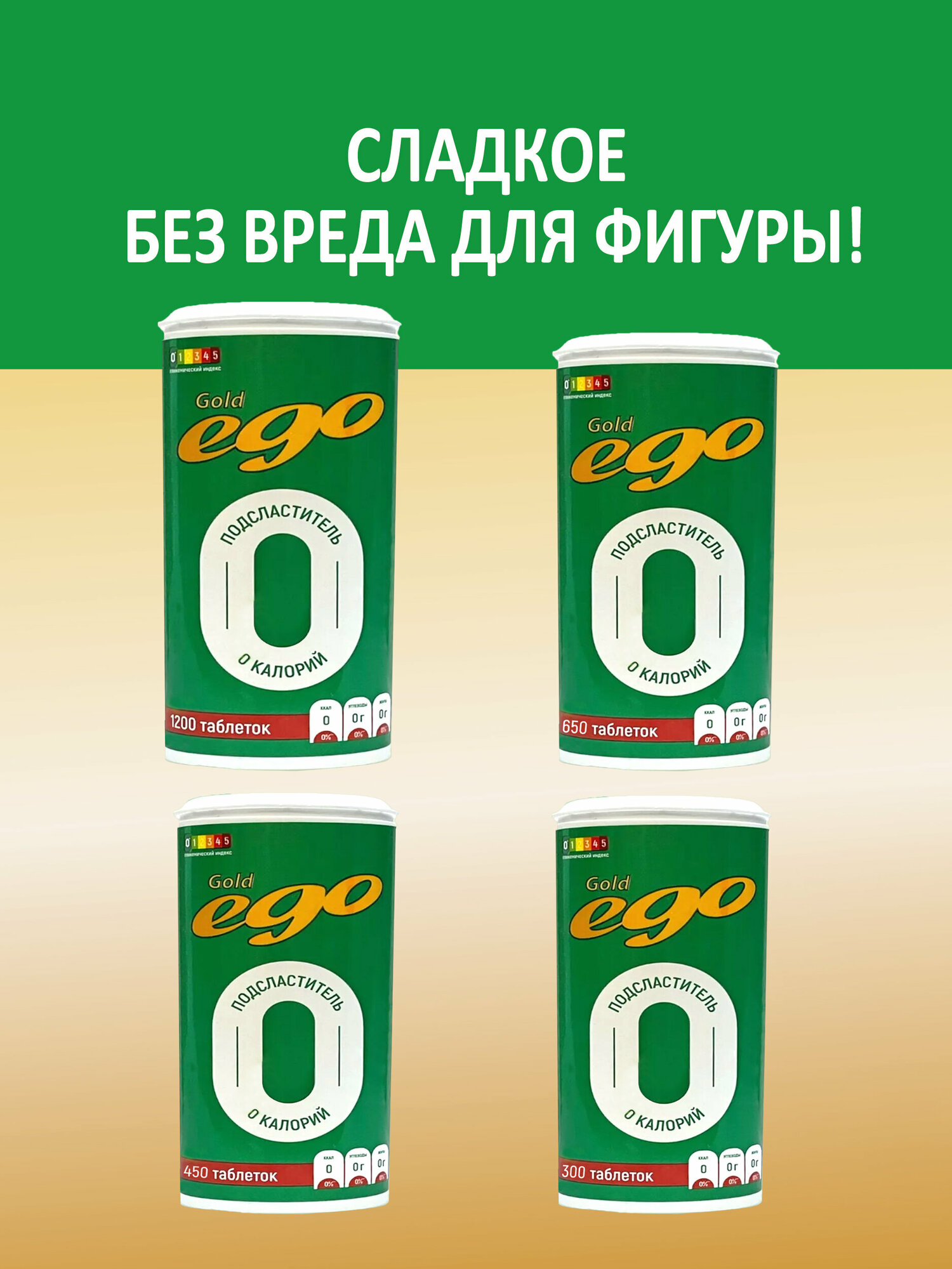 Подсластитель "Эго Голд" 450 таблеток / сахарозаменитель / без лактозы интересное: