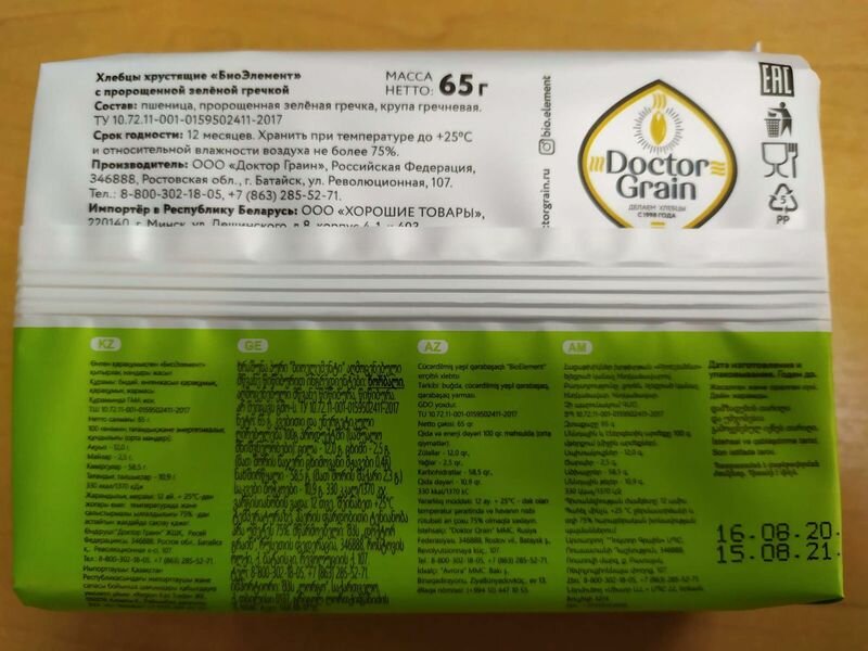 Хлебцы с пророщенной Зеленой Гречкой, 65г Доктор Граин, без муки интересное:
