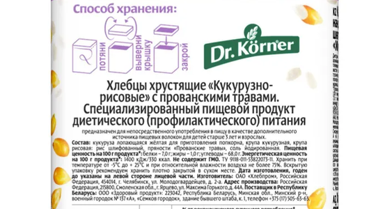 Dr. Korner Хлебцы хрустящие "Кукурузно-рисовые", с прованскими травами 100 г интересное: