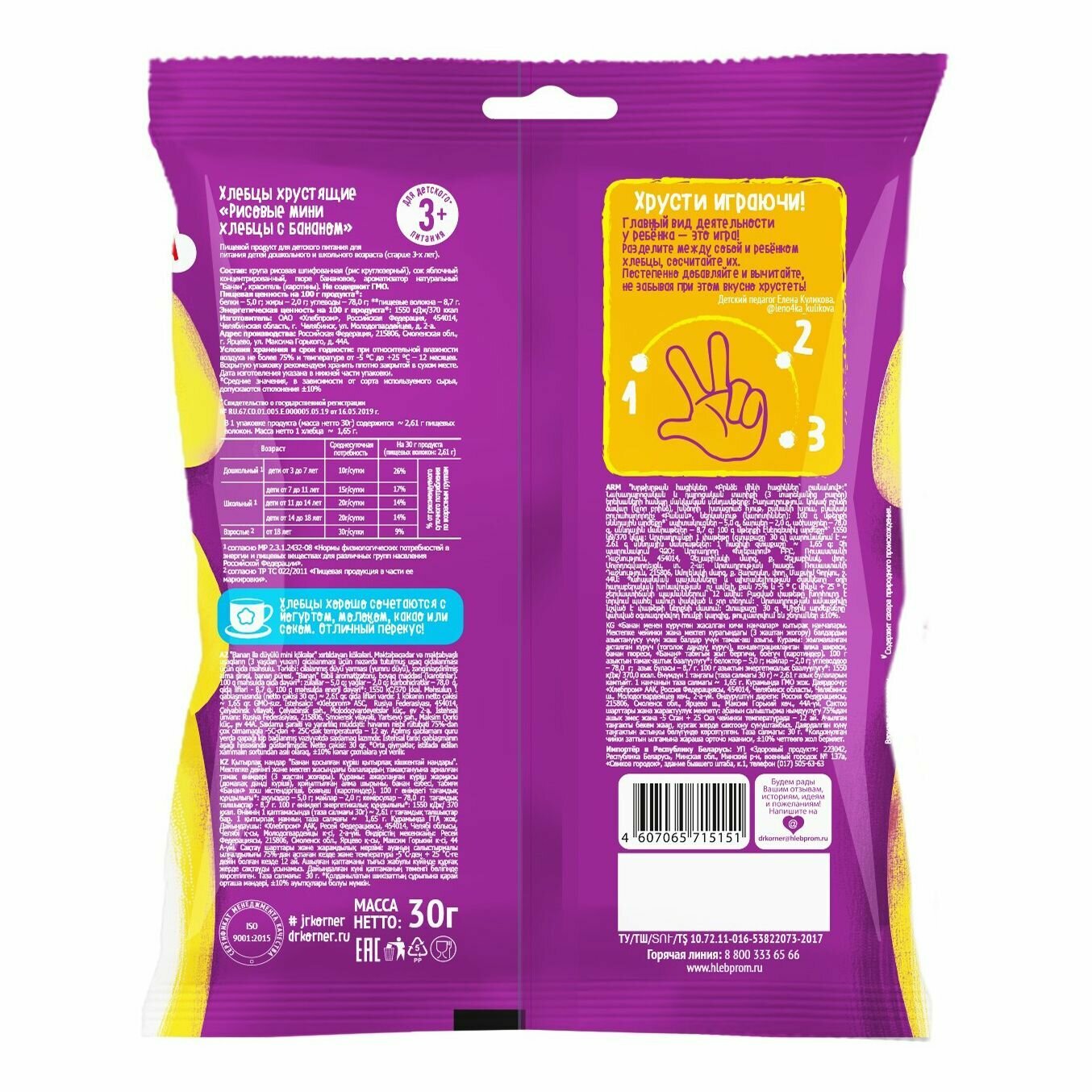 Хлебцы рисовые Dr.Korner Корнерсы с бананом 30 г интересное: