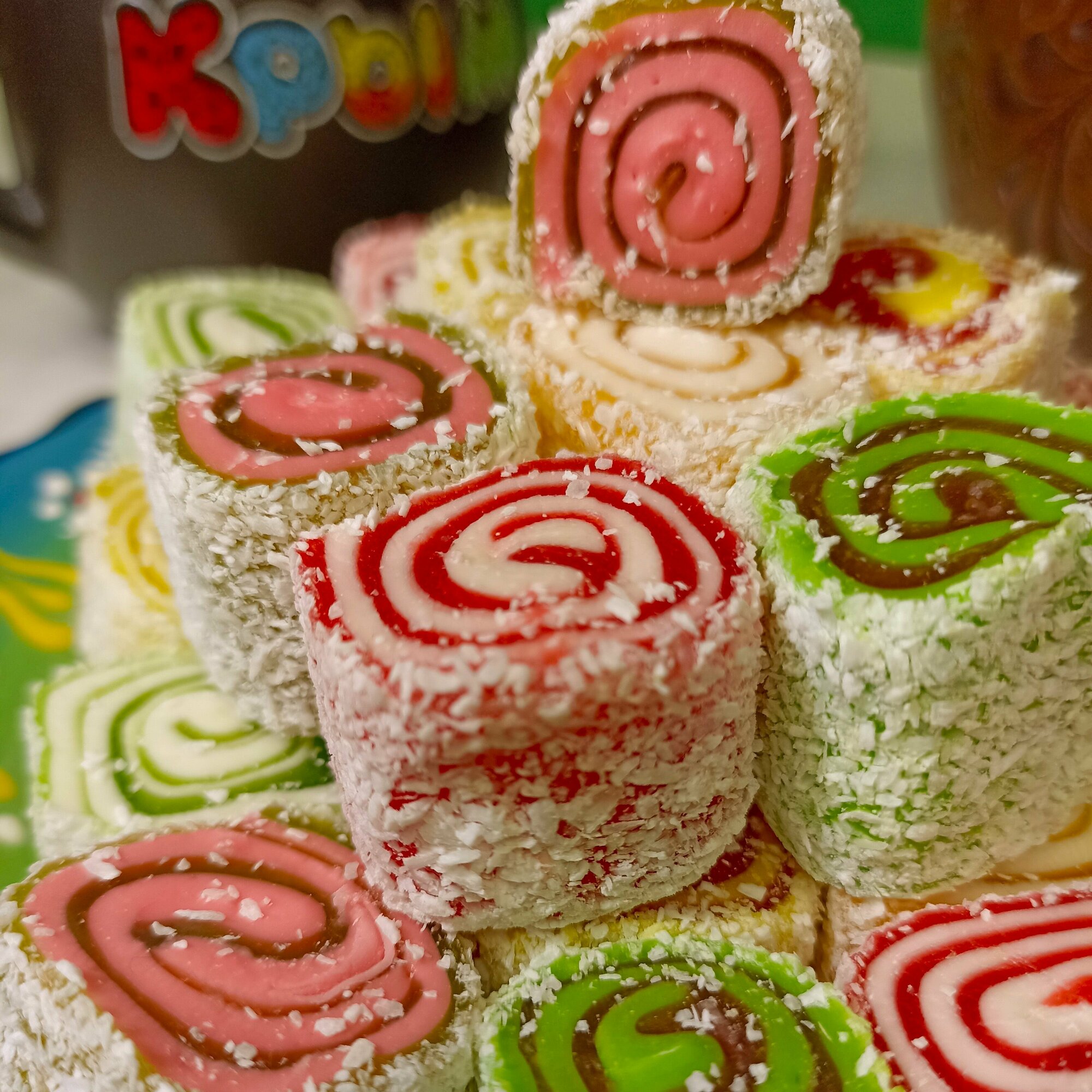 | Состав | сахар-песок, вода питьевая, крахмал кукурузный, кокосовая стружка, мыльный корень, патока крахмальная, ароматизатор идентичный натуральному (дыня, яблоко, апельсин, гранат), краситель идентичный натуральному, кислота лимонная. |