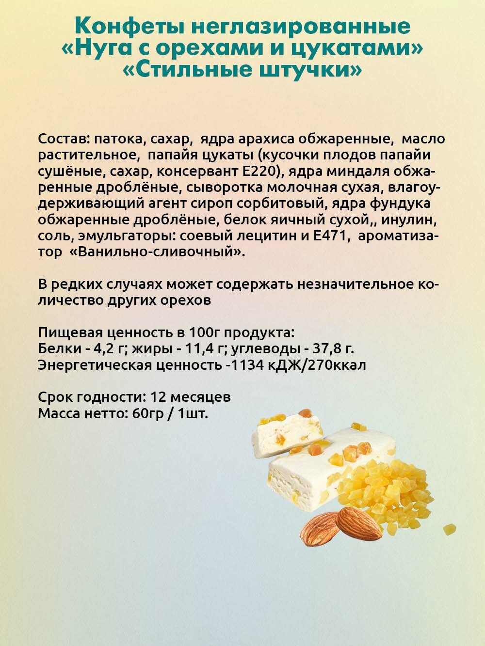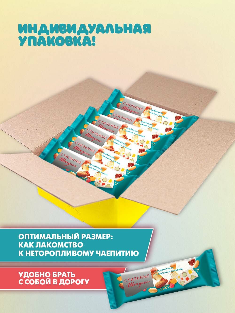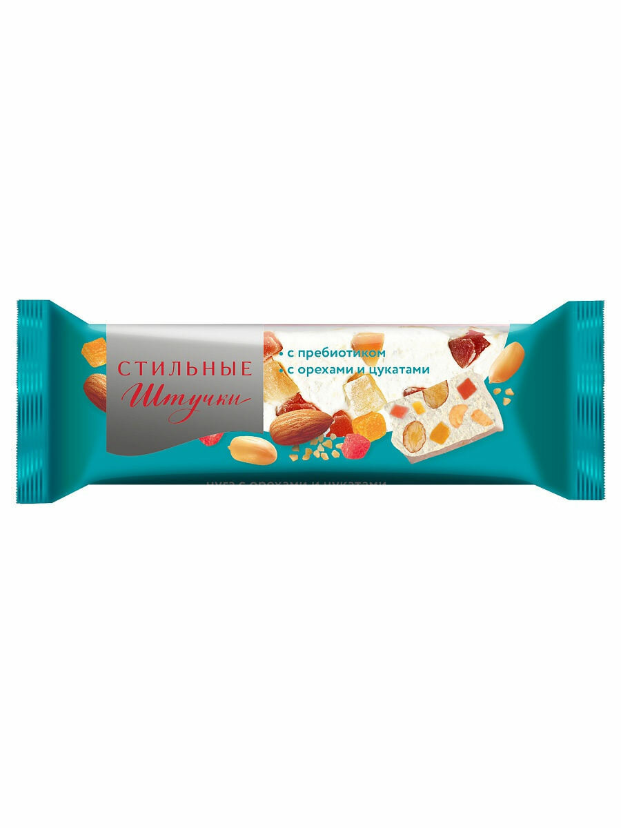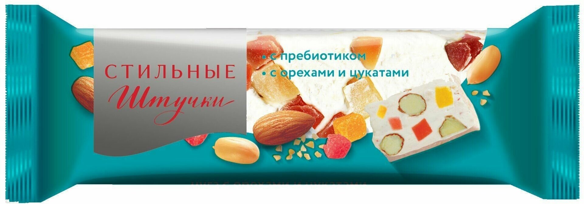 Батончик/конфеты "Стильные штучки" Нуга с орехами и цукатами/ конфета с нугой/ конфетами с орехами и нугой/ батончик с нугой/ батончик на основе нуги/ перекус 60 г , 12 шт в шоу-боксе интересное: