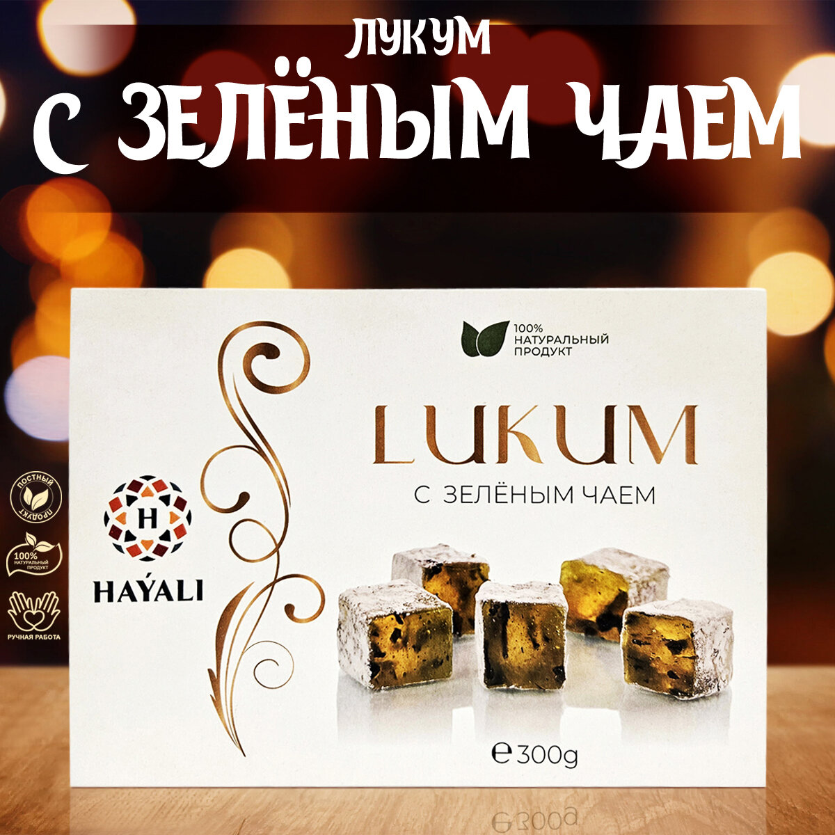 "Рахат-лукум с зеленым чаем" от бренда "HAYALI" - 300 грамм сладости