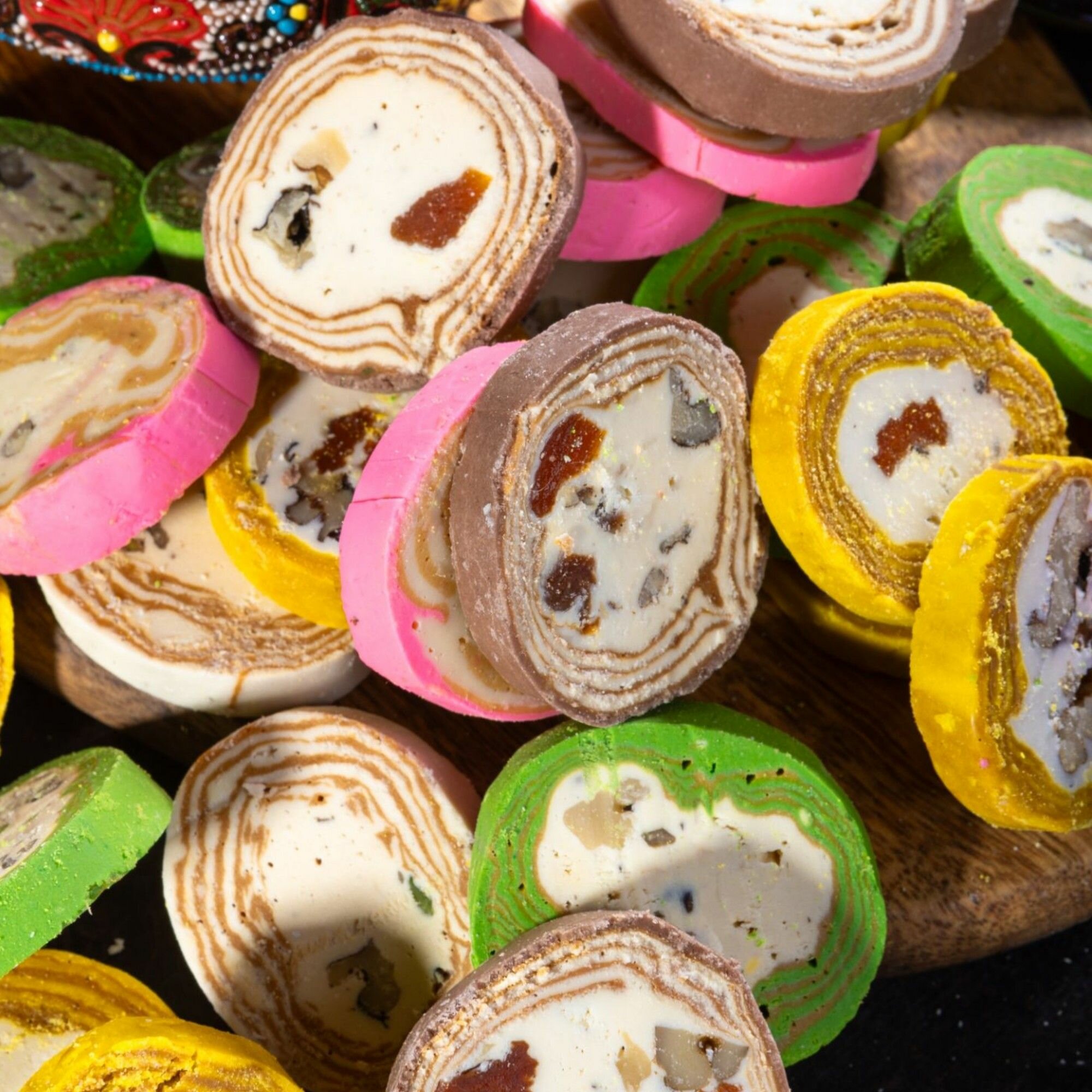 | Состав | сухое молоко, сливочное масло, сахар, фисташки ядро и грецкий орех, арахис, молоко сгущенное (вареное), патока крахмальная, лимонная кислота, ванилин, пищевой краситель. |