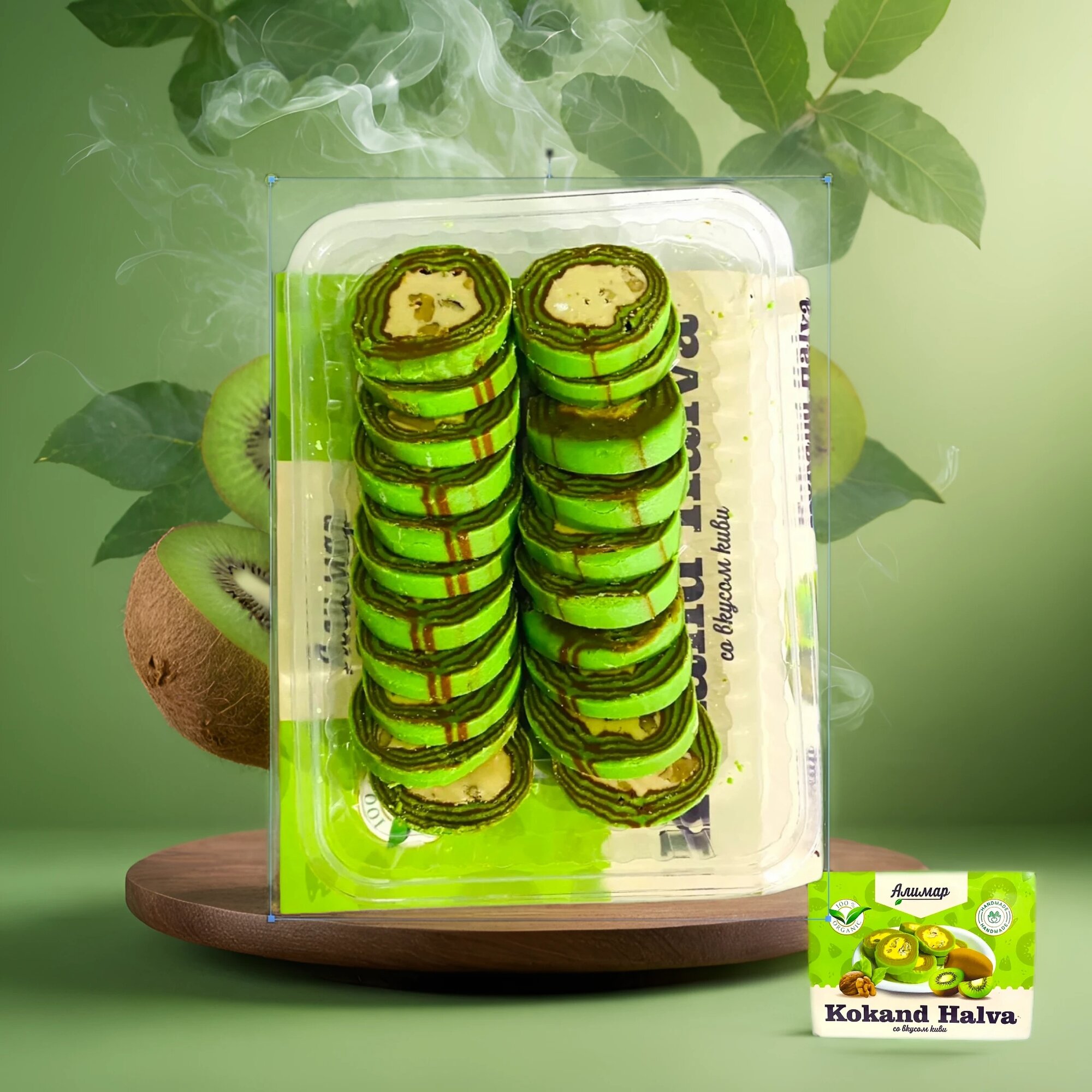 Халва Кокансдкая с грецким орехом и со вкусом киви 300 грамм интересное: