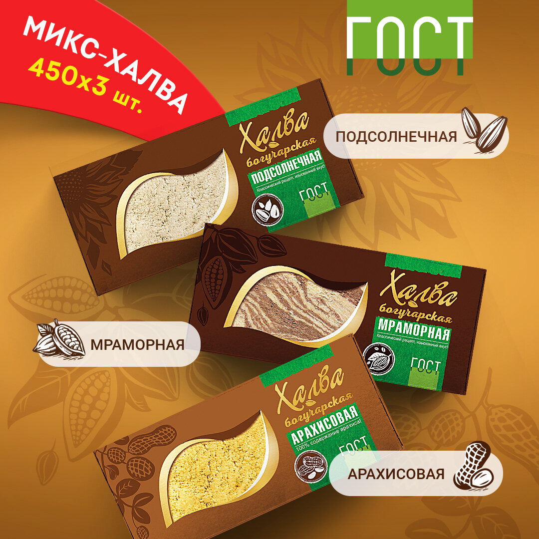Купить Микс Халва "Богучарская" Подсолнечная/Мраморная/Арахисовая 450 г х 3 шт.