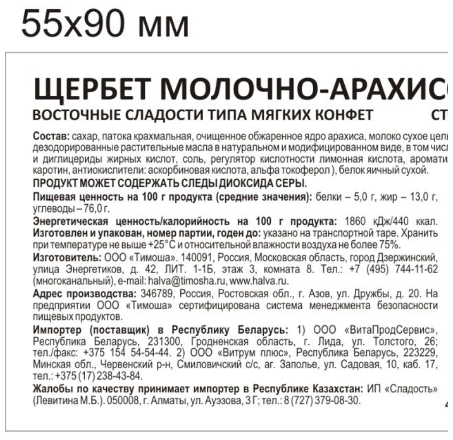 | Производитель | Пищевой комбинат Азовский |