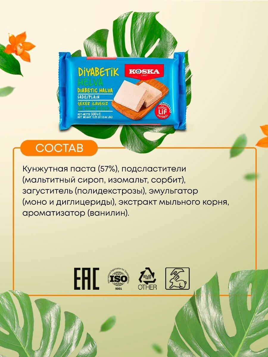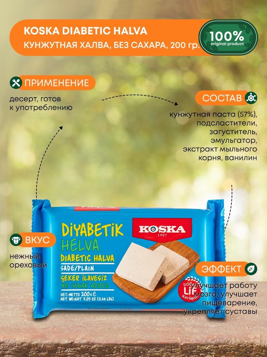 DIABETIC Helva NO SUGAR ADDED, Koska (Кунжутная халва без сахара), 350 г.