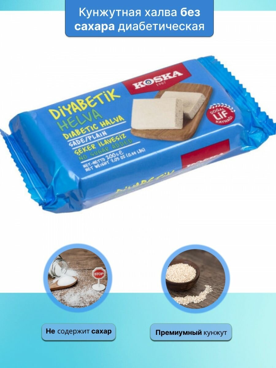 Халва кунжутная без сахара диабетическая 200гр KOSKA, в пластиковом контейнере