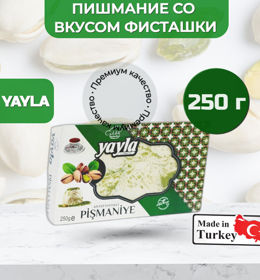 Турецкое Пишмание (воздушная халва) Нитевидное с добавлением Фисташек ; Yayla, 250 г. интересное: