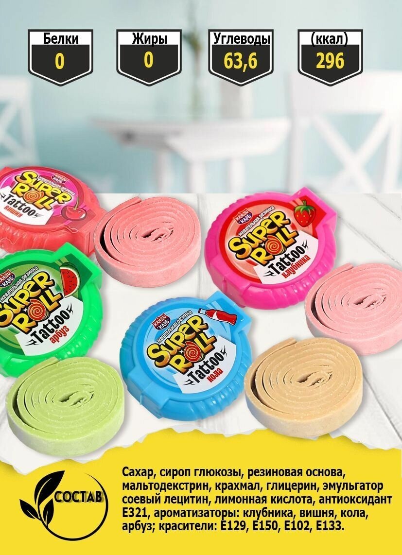 Жевательная резинка "супер ролл С тату" ассорти 12 гр Упаковка 24 шт интересное: