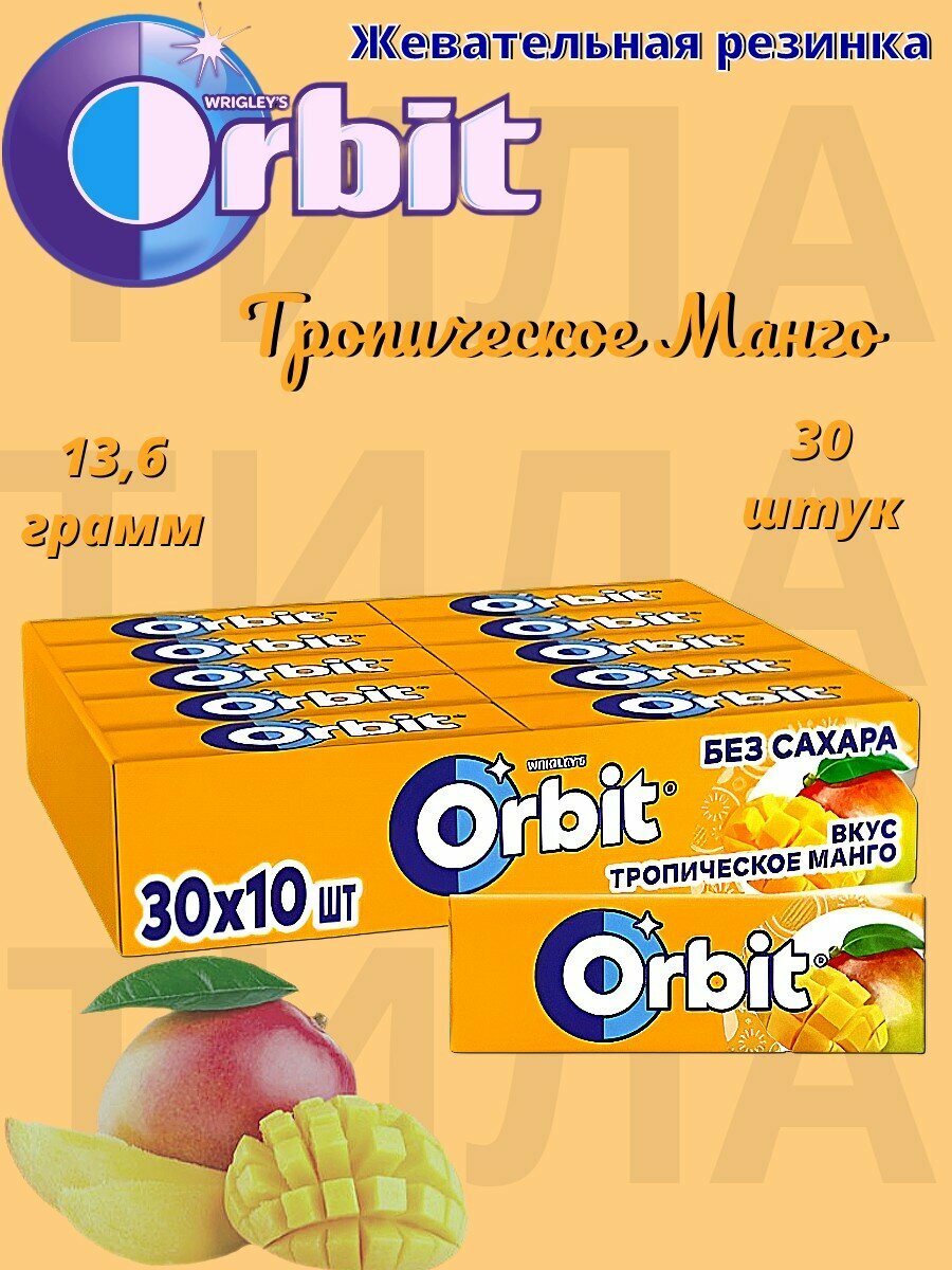Жевательная резинка без сахара Орбит Манго 30 пачек по 13.6 г интересное: