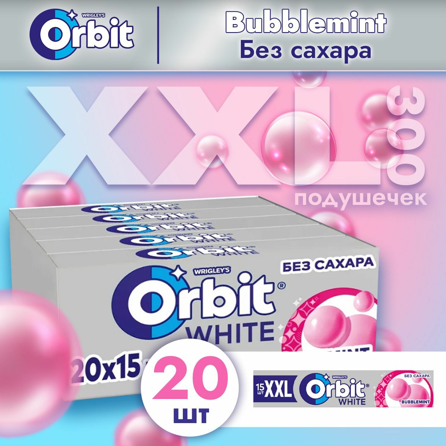 Жевательная резинка 20 шт по 20.4 г Bubblemint XXL Orbit интересное: