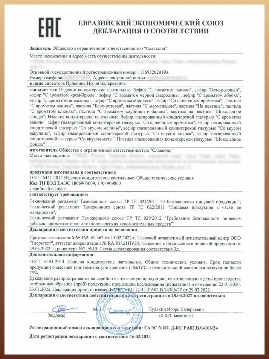 | Производитель | Тверской кондитер |
