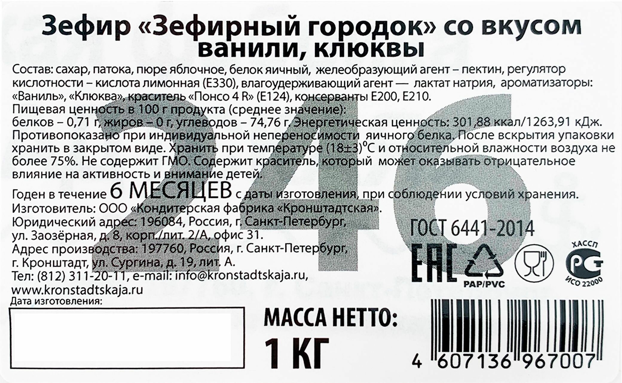 СохранитьЗефир ваниль/клюква "Зефирный городок", КФ кронштадтская (1кг) интересное: