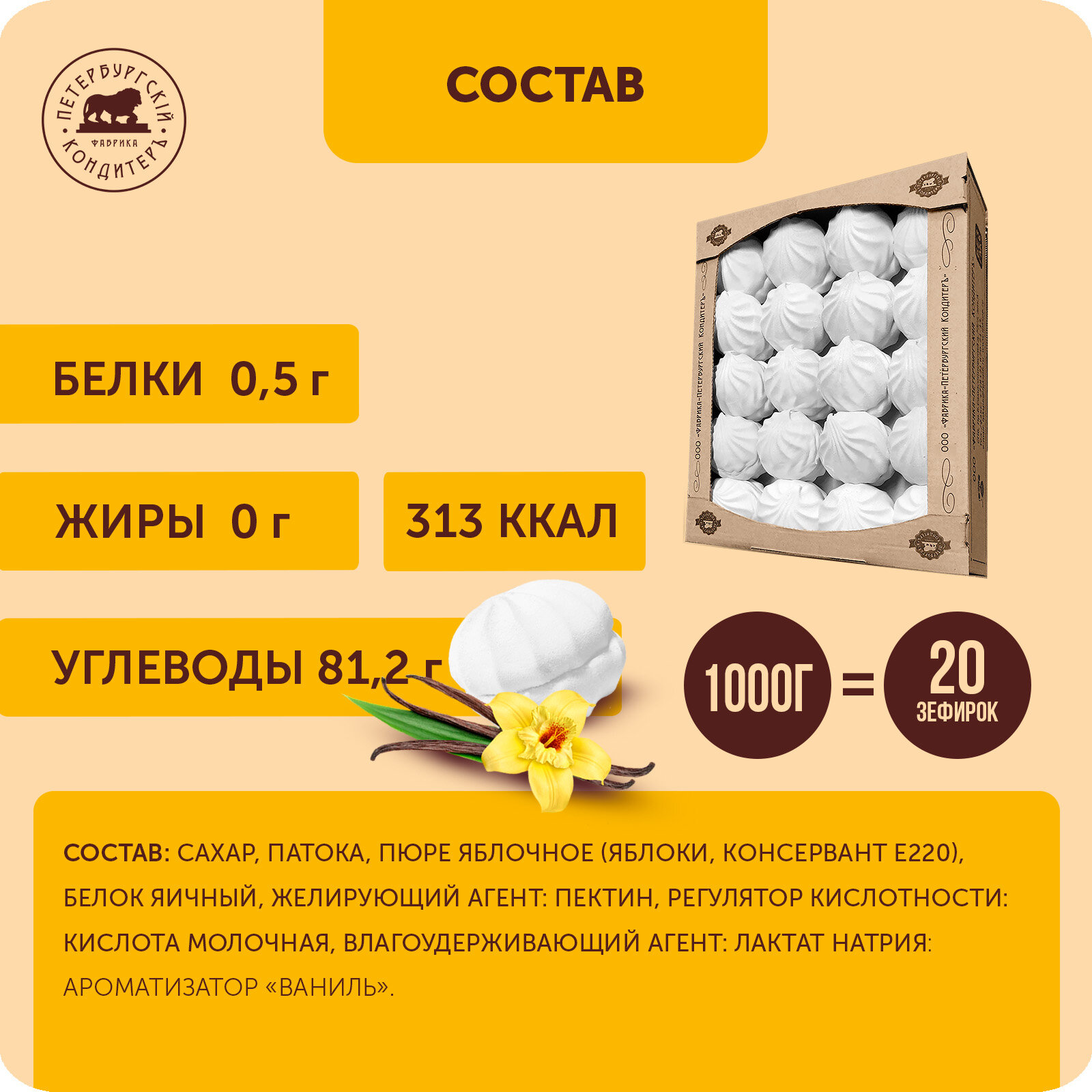 Классический ванильный зефир 1 кг, натуральный состав, полезные сладости. Петербургский КондитерЪ интересное: