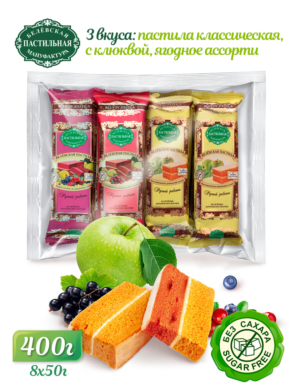 Набор пастилы «Белёвская Пастильная Мануфактура» без сахара с ягодами, 400 г.