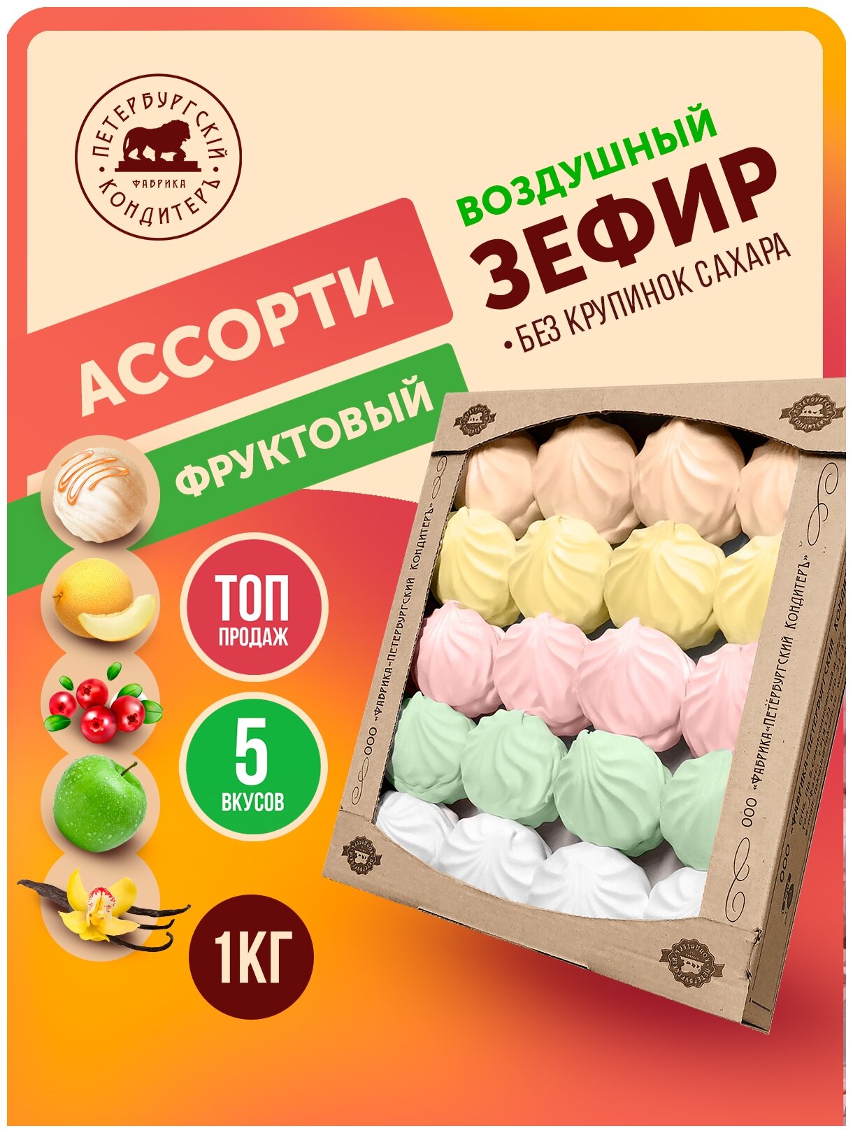 Купить Зефир Ассорти со вкусами дыня, яблоко, клюква, ваниль, крем-брюле, 1 кг