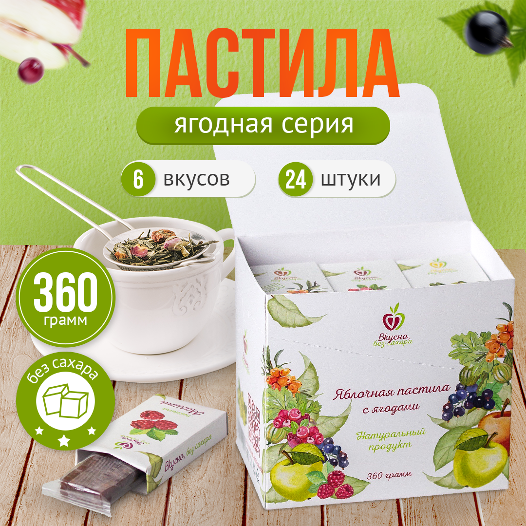 Пастила без сахара Вкусно, без сахара! Ягодное ассорти, подарочный набор, 360 г, 24 шт в уп. интересное: